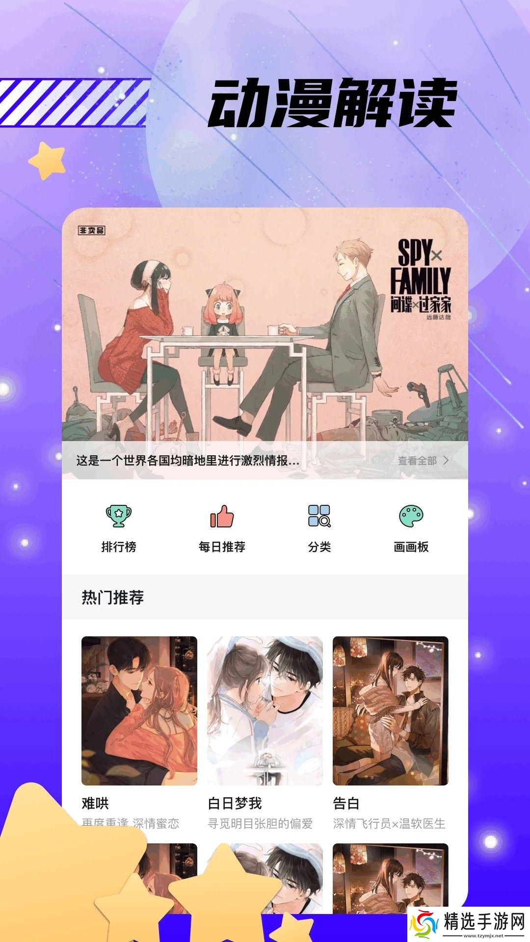 漫漫国app官方下载无广告说明1.每天推荐最新最热门的动漫视频,点击直接观看,轻松快速地找到当前流行的动漫作品。