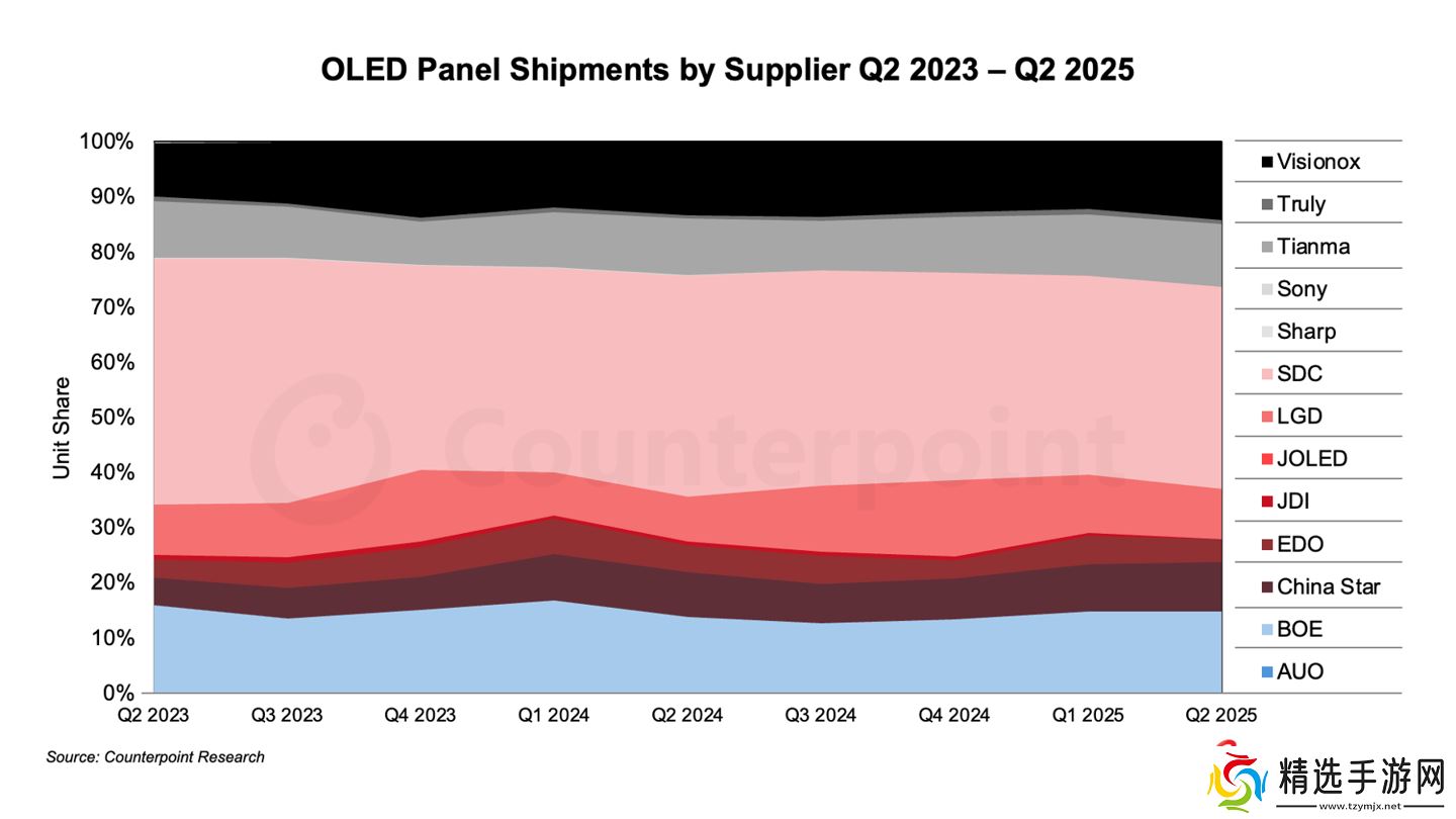 供应商格局正在发生变化,三星显示(SDC)进一步巩固领先地位,京东方(BOE)和维信诺(Visionox)正在追赶,LG 显示(LGD)则面临压力,尽管其在某些细分领域仍具优势。