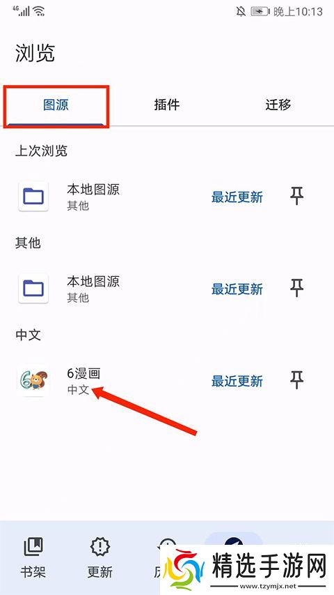 4、安装完成后,我们在图源界面找到并选择刚刚安装好的漫画插件,