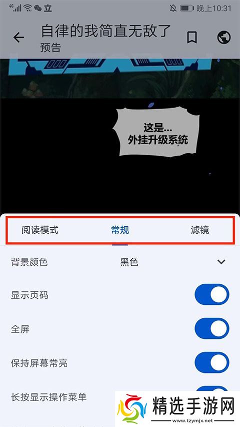 7、进入阅读界面,用户还可以根据习惯进行阅读模式、背景颜色、滤镜等设置,