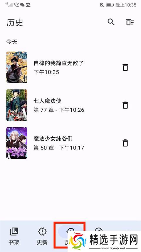 10、在历史界面,可看到自己的观看历史,选择相应的漫画可继续观看,
