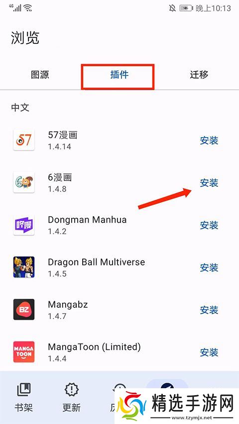 2、选择需要的漫画插件进行安装,这里以6漫画为例,