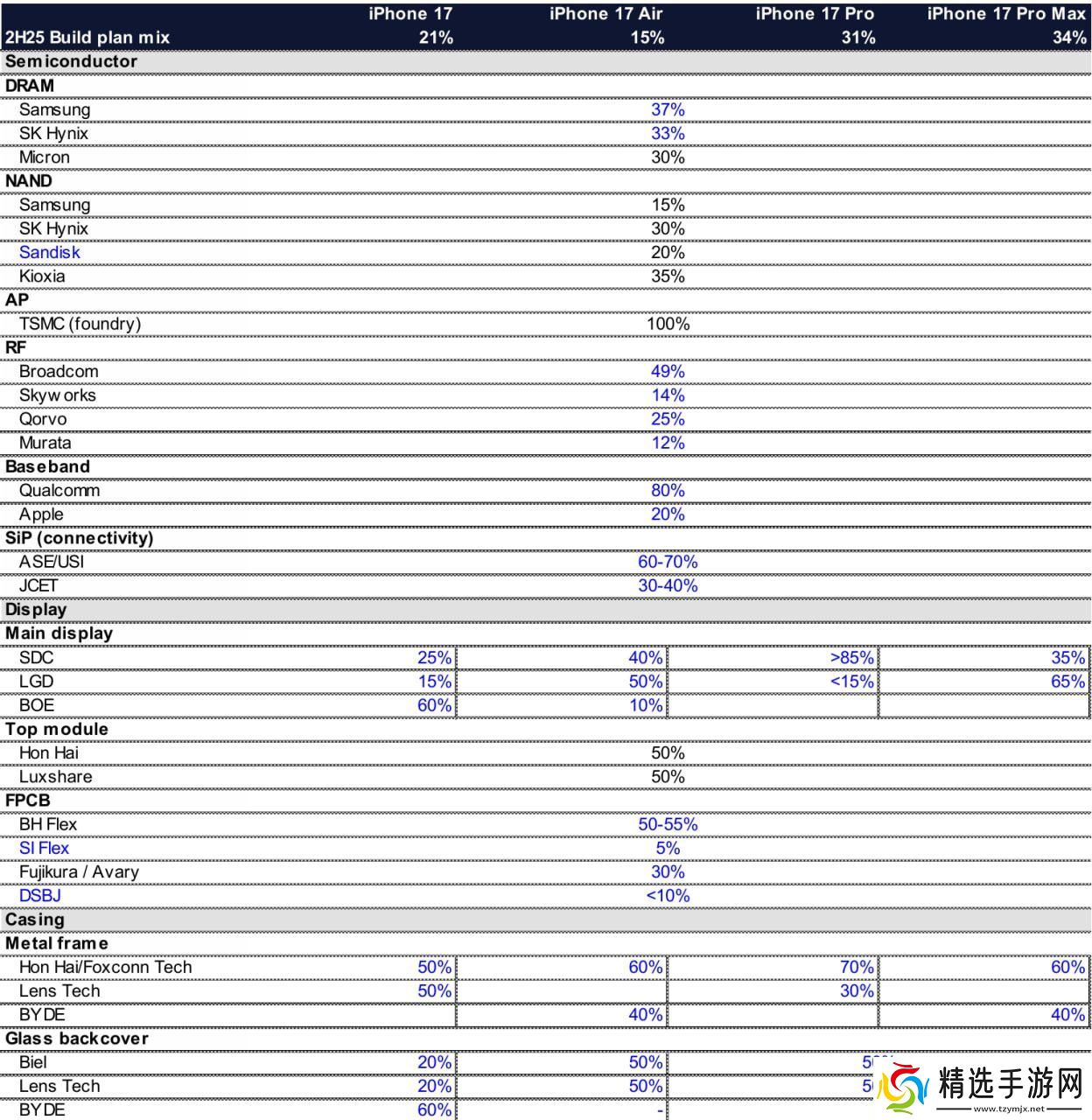 花旗分析报告显示,苹果 iPhone 17 Air 的 DRAM 与 NAND 芯片供应商将拓展至五家厂商:三星电子、SK 海力士、美光科技、闪迪、铠侠。