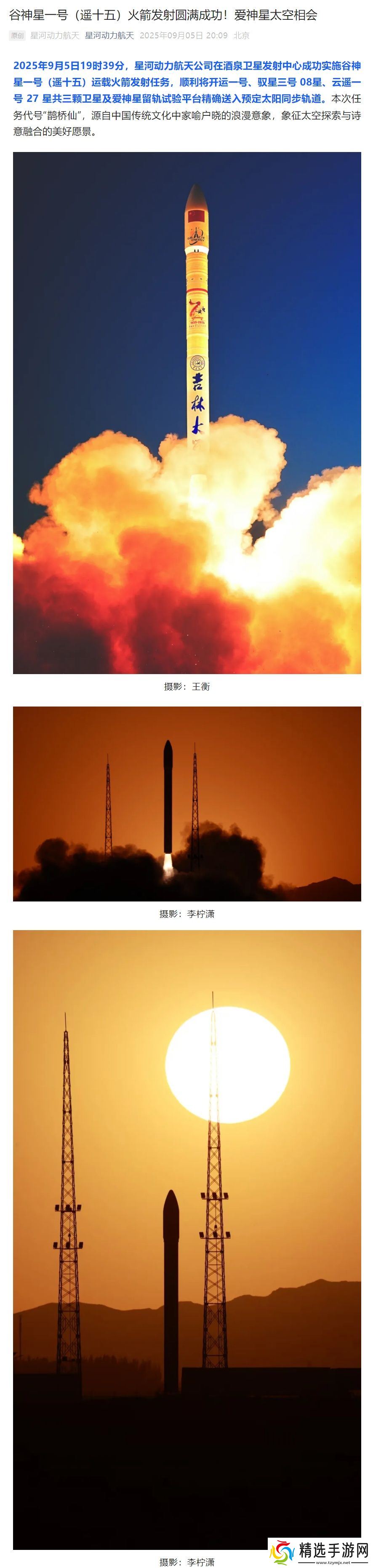 本站 9 月 8 日消息,北京时间 9 月 5 日 19 时 39 分,我国在酒泉卫星发射中心使用谷神星一号(遥十五)运载火箭,成功将云遥一号 27 星和爱神星留轨试验平台发射升空,目前,卫星和试验平台顺利进入预定轨道。