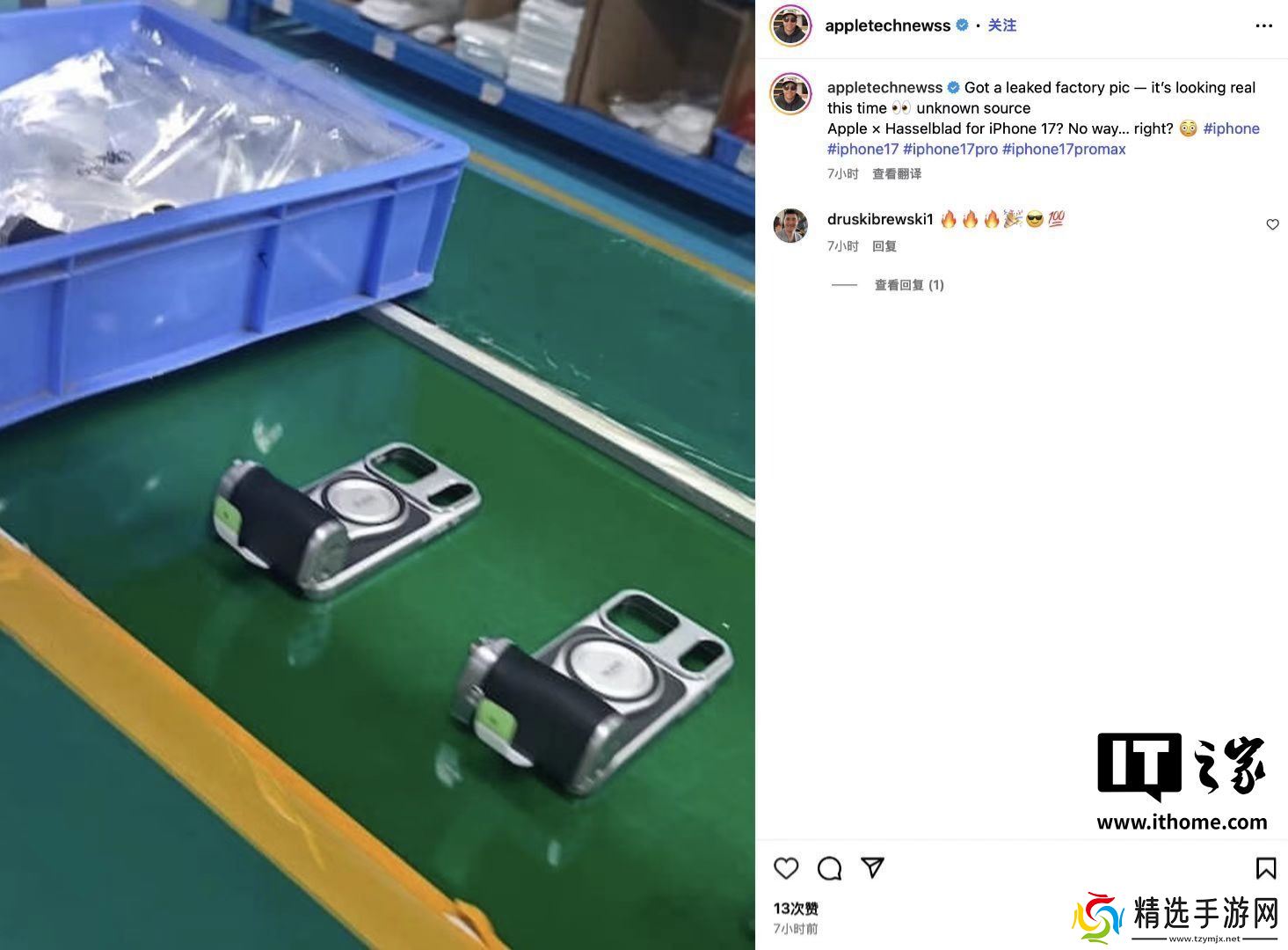 本站 9 月 8 日消息,此前外媒 Appletechnews 发布谍照,声称哈苏将为苹果 iPhone 17 Pro / Max 系列手机推出拍照手柄外设,定价约 200 美元(本站注:现汇率约合 1428 元人民币)。