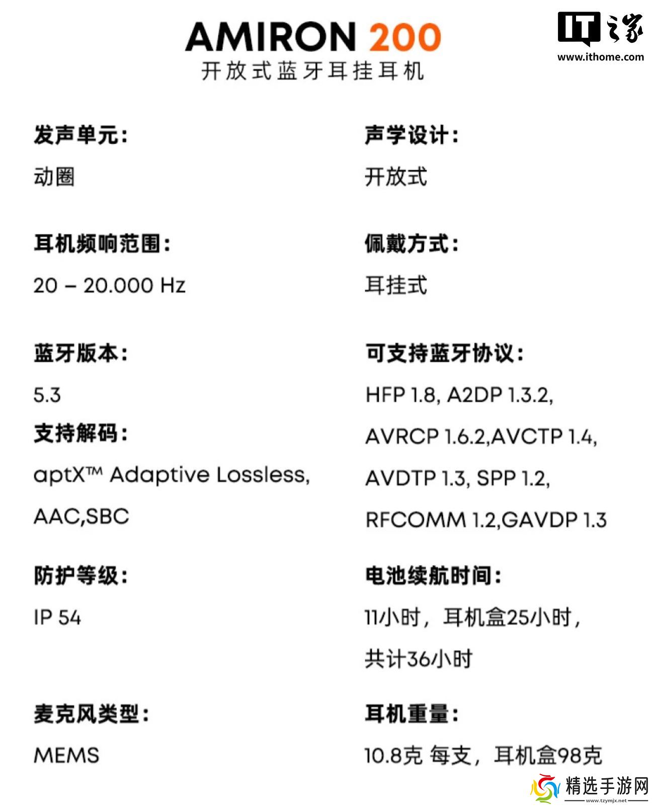 而 AMIRON 200 耳机同样拥有 IP54 认证,强调低频表现,耳机本体支持触控操作,同时配备有双麦克风降噪,在搭配充电盒使用时至高拥有 36 小时续航。