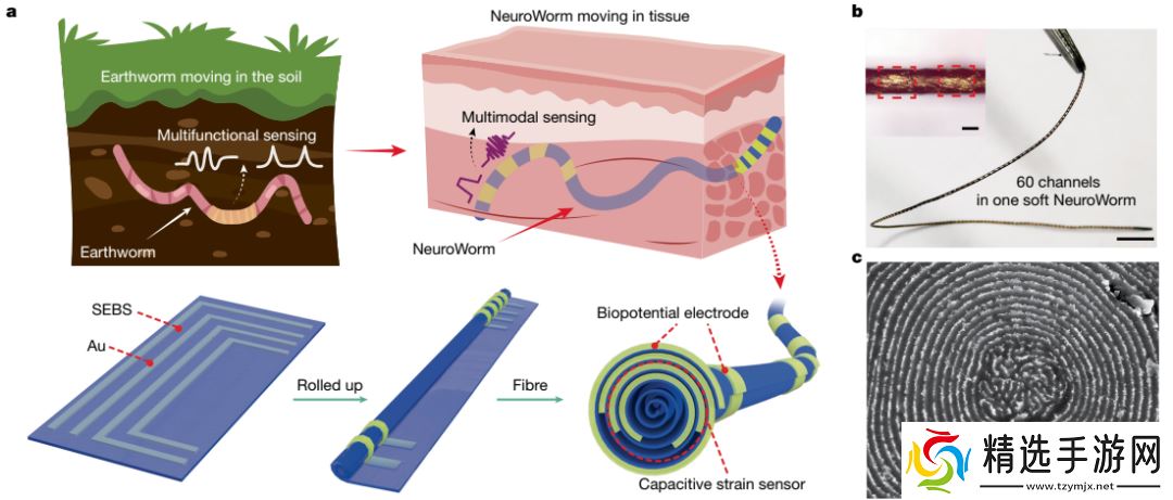 研究团队成功研发出了如头发丝般纤细、柔软可拉伸、可自由驱动的神经纤维电极 —— NeuroWorm(神经蠕虫)。该研究首次提出了脑机接口“动态电极”的新范式,打破了植入式电极的“静态”传统,为脑机接口电极的研究与应用开辟了新方向。