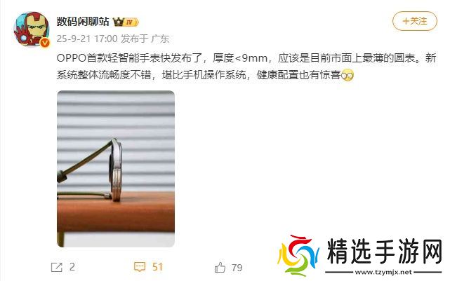 本站 9 月 21 日消息,据博主 @数码闲聊站 爆料,“OPPO 首款轻智能手表快发布了,厚度 <9mm,应该是目前市面上最薄的圆表。新系统整体流畅度不错,堪比手机操作系统,健康配置也有惊喜。”