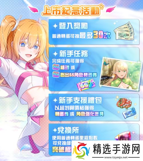 开服庆典火爆来袭!9月3日起,每日登录即赠转蛋券,累计可达30张。完成初心者任务,宝石、转蛋券及珍稀角色“眼中只有你”艾露芬绘理、SS角色必出券等你拿!新手礼包限时72小时专享。