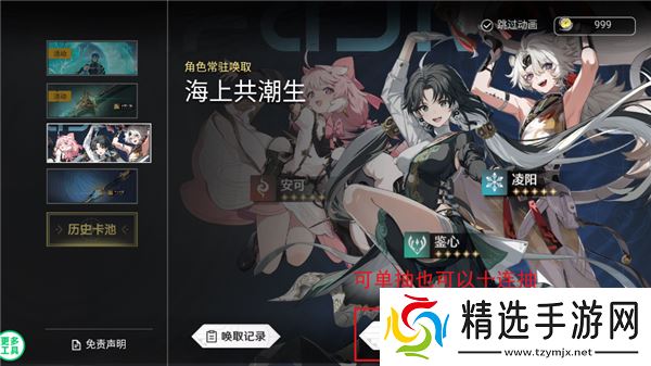 2、屏幕左边可以查看/切换各个卡池之后再模拟抽卡;