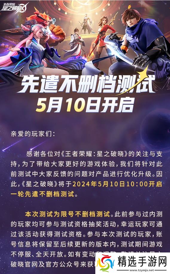王者荣耀ip手游星之破晓在5月10日会进行新一轮的测试,本次测试的获取方式为抽奖获得,而且是在5月10日当天进行抽奖,此外星之破晓的正式上线时间在5月到6月期间。