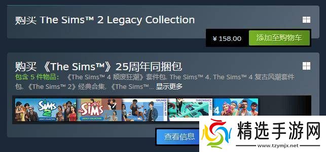 在Steam平台上,《模拟人生:经典合集》以118元人民币的价格面向中国玩家发售,而《模拟人生 2:经典合集》的售价则为158元人民币。两款合集均支持中文界面,极大地提升了国内玩家的游戏体验。为了庆祝《模拟人生》系列诞生25周年,EA还特别推出了包含《模拟人生》、《模拟人生 2》以及《模拟人生 4》的同捆包,国区Steam售价为198元人民币,为粉丝们提供了前所未有的收藏价值。