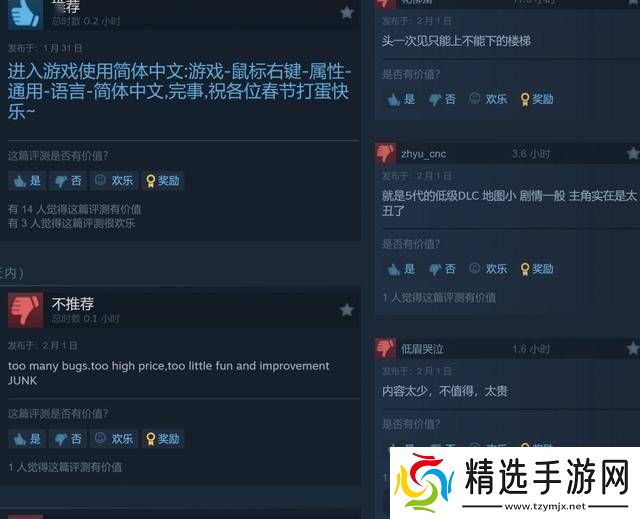 在Steam评论区,玩家们纷纷指出了《狙击精英:抵抗》存在的问题。有玩家认为,这款游戏与前作相比并无太大改进,甚至有人直言其只是《狙击精英5》的DLC,游戏体量过小,但定价却偏高。还有玩家反映游戏中存在诸多Bug,如楼梯只能上不能下、自动保存功能失效等,这些问题都严重影响了玩家的游戏体验。