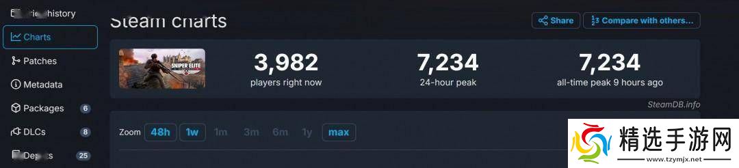 据SteamDB数据显示,《狙击精英:抵抗》在发售后的同时在线人数峰值仅为7294人,而当前在线人数已下降至3982人。该游戏在首发时还登陆了XGP平台,这或许是其Steam版评价和在线人数均表现不佳的重要原因之一。不少玩家可能更倾向于通过XGP来体验这款新作。