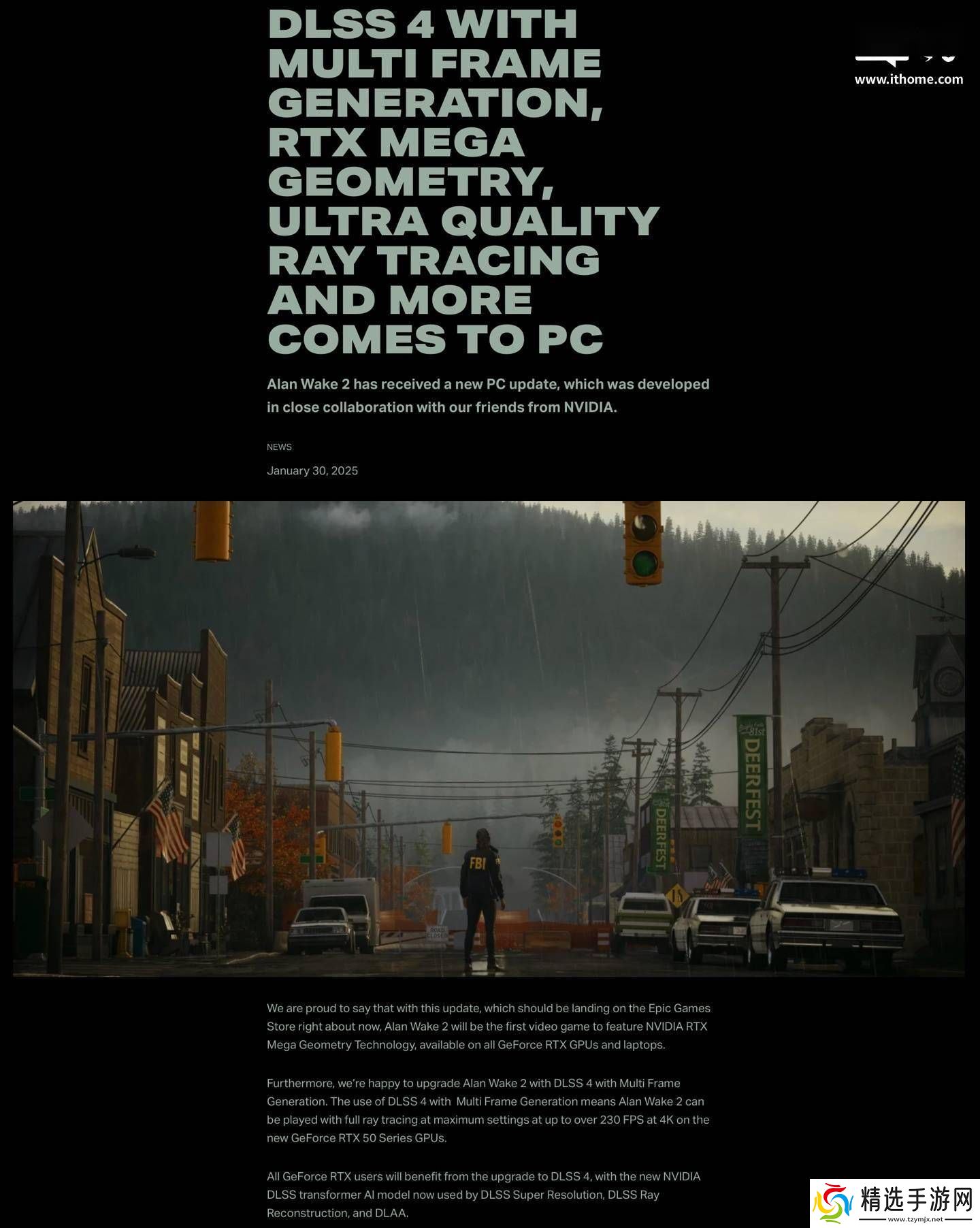 据Remedy官方介绍,当玩家在游戏中启用DLSS4及多帧生成功能后,《心灵杀手2》的视觉体验将迎来质的飞跃。特别是在搭载RTX5090显卡的高端配置下,玩家将能够享受到4K分辨率下高达230fps的流畅画面,这无疑为追求极致游戏体验的玩家带来了福音。