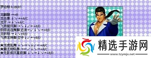 冰柱割:→+A虎煌拳:↓→+A或C虎炮:→↓→+A或C猛虎雷神刚跳跃中:→↓→+A或C飞燕疾风脚:→↓←+B或D极限流连舞拳:(近身)←↓→+A或C猛虎雷神刚:↓←+A或C(击中后可接虎炮)猛虎雷神刹:↓→+B或D龙虎乱舞:↓→↓←+A或C霸王翔吼拳:→←↓→+A或C天地霸王拳:↓→↓→+A或C8.罗伯特
