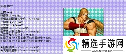 后打:→+A步步高:↓→(这两个键同时按)+C火焰冲拳:↓←+A或C能量波:↓→+A或C碎石踢:↓←+B或D倒跃踢:→↓→+A或C灌篮强击:→↓→+B或D能量补充:←↓→+B或D能量喷泉:↓←↓→+A或C高轨喷泉:↓→↓→+B或D5.安迪