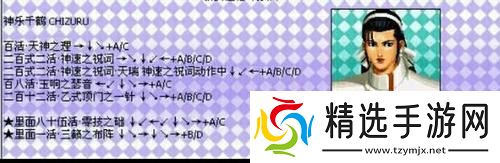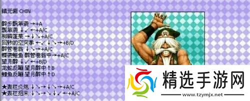 醉步飘箪袭:→+A瓢箪袭:↓←+A或C柳磷蓬莱:→↓→+A或C回转的空突拳:←↓→+B或D(醉管卷翁中→+B或D) 或 望月醉中→+B或D醉管卷翁:↓→+A或C蝶袭鲑鱼:醉管卷翁中→+A或C望月醉:↓←+B或D龙蛇反蹦:望月醉中↑B鲤鱼反蹦:望月醉中↑D鬼醉酒:↓→+A或C轰栏炎炮:↓→↓→+A或C轰栏招来:↓→↓←+A或C15.神乐千鹤