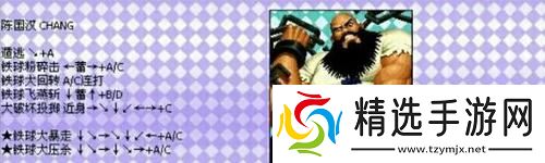 多拉打击:→+A定位打击:→+B飞燕斩:↓(蓄)↑+B或D(接↓B或D)半月斩:↓←+B或D飞翔脚:(跳跃中)↓→+B或D流星落:←(蓄)→+B或D空砂尘:↓(蓄)↑+A或C凤凰脚:↓←↓→+B或D(跳跃中可)凤凰天舞脚:(跳跃中)↓→↓←+B或D19.陈国汉