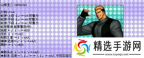 大锤击:→+A上升之箭:↓→(这两个键同时按)+B旋转下落:↓→+B或D玛丽蜘蛛固:↓→+A或C指天回旋脚:←(蓄)→+B或D俱乐部飞标:指天回旋脚击中后↓→+B或D垂直之箭:→↓→+B或D玛丽攫夺:垂直之箭击中后→↓→+B或D玛丽翻脸:↓←+B头部飞弹:↓←+D回身真落:(近身)←↓→+A或C玛丽台风:(近身)→↓←→↓←+B或D玛丽野玫瑰:↓→↓←+A或C动感闪光:↓→↓→+B或D25.山崎龙二