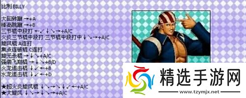 打刺:→+A蛇使·上段:↓←+A(可蓄)蛇使·中段:↓←+B(可蓄)蛇使·下段:↓←+C(可蓄)蛇使取消:蛇拳蓄劲中D施虐:←↓→+B或D倍返:↓→+A或C制裁之首:→↓→+A或C爆弹:(近身)←↓→+A或C踢砂:→↓→+B或D断头台:↓→↓→+A或C射杀:(近身)→↓←→↓←+A或C(A+C连打蓄力) ……(完结时)你死定了!26.比利