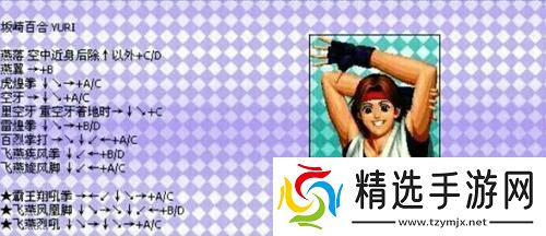 燕落:(空投)↑以外+C或D燕翼:→+B虎煌拳:↓→+A或C空牙:→↓→+A或C里空牙:重空牙着地时→↓→+C雷煌拳:↓→+B或D百烈掌击:→↓←+A或C飞燕疾风拳:↓←+B或D飞燕旋风脚:↓←+A或C霸王翔吼拳:→←↓→+A或C飞燕凤凰脚:↓→↓←+B或D飞燕烈孔:↓→↓→+A或C10.莉安娜 (暴走莉安娜按住开始键不放输入↑↓↑↓↑↓+B+D)