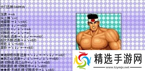 旋转膝落:(空投)↑以外+C或D杰克小刀踢:→+B飞之技巧:(跳跃中)↓+D雷韧拳:↓→+A或C空中雷韧拳:(跳跃中)↓→+A或C真空片手驹:↓←+A或C超级闪电踢:→↓→+B或D居合蹴:↓→+B或D反动三段蹴:→↓←+B或D红丸投:(近身)→↓←→+A或C雷光拳:↓→↓→+A或C大发电者:(近身)→↓←→↓←+A或C3.大门五郎