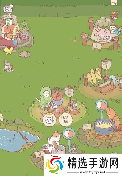 每个猫的技能不一样星级也不同,技能对应加成,如切卷心菜,洋葱胡萝卜等等,选择对应的岗位就有加成,加成按星级高低递增,选择正确则如p1带有星级标识,猫咪的加成也对应好感p2喂鱼(每天有六次机会钓鱼)蛋糕增加。