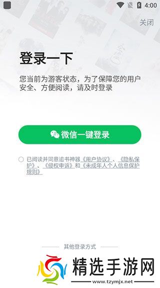 追书神器使用教程1、首先打开在本站下载的追书神器,支持微信一件登录,不过也可以使用QQ或手机号进行登录;