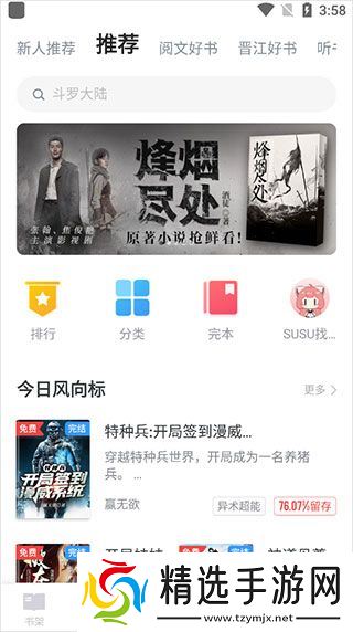 新人推荐、阅文好书、晋江好书、听书、上新、精选、男生、女生、出版;