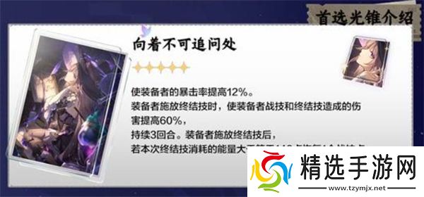 优点:这款光锥能够大幅提升大黑塔的暴击输出,并且增加战技的伤害,强化其爆发力。此外,施放大招后还可以恢复战技点,帮助你更频繁地释放技能,提升整体伤害输出。