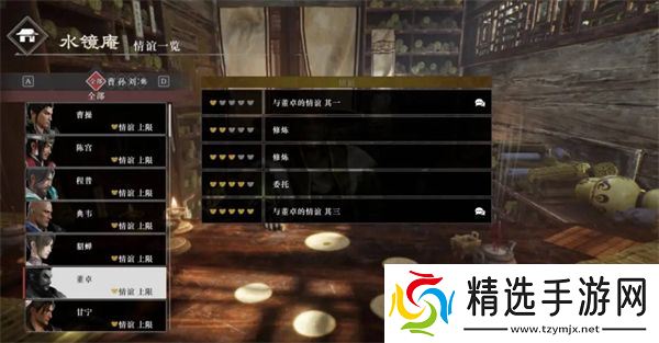 方法:董卓的情谊提升非常简单,在十常侍之乱后与董卓交谈即可解锁情谊成就。这个情谊的提升在故事发展后就无法继续,因此要抓住这一机会。