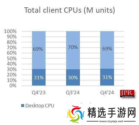 近期,知名市场研究机构Jon Peddie Research公布了一项关于全球CPU市场的最新报告。该报告指出,在2024年的最后一个季度,全球客户端CPU市场经历了一次显著的增长,这一增长势头主要受到了AI PC(人工智能个人电脑)流行趋势的推动。