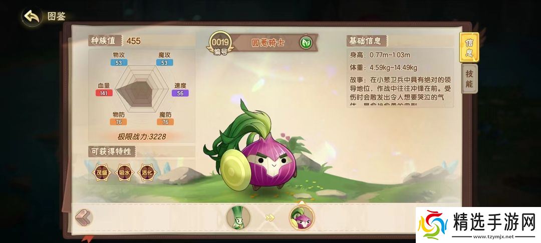 随处可见的小韭葱,却是个不折不扣的恢复系能手,进化后的圆葱骑士更是具有高强度的恢复能力。