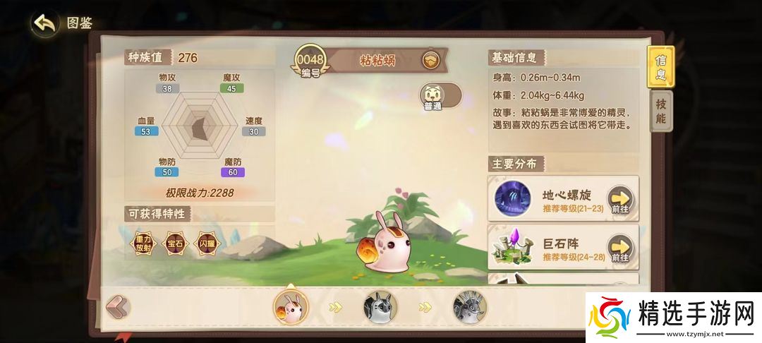 精灵速度慢总是被对方先手打败?让粘粘蜗来帮你~特性重力放射,重力场内速度慢的精灵才能先手攻击,战斗不再慢人一步,助力小西普们的最后一击!