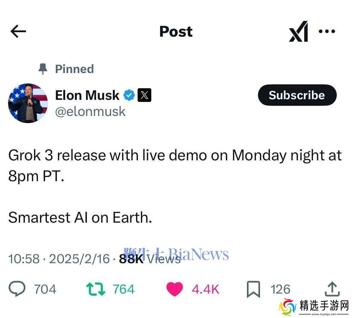 马斯克近期在X平台上发布了一条引人瞩目的消息,他宣布Grok 3这一人工智能大模型将于太平洋时间周一晚8点震撼发布,并亲自进行现场演示。他毫不吝啬地称赞Grok 3为“地球上最聪明的AI”,这一言论立即引发了广泛关注和热议。