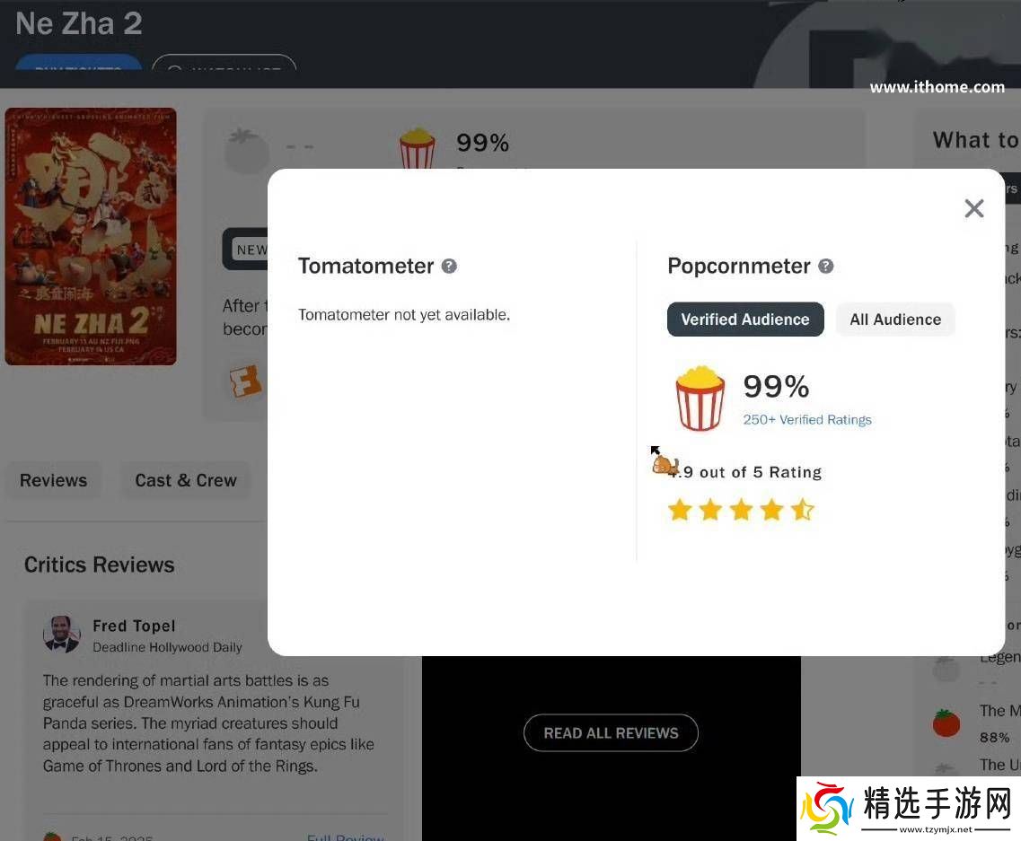 近日,备受瞩目的动画电影《哪吒之魔童闹海》在全球范围内收获了极高的口碑与票房成绩。该片在烂番茄平台上的观众爆米花指数高达97%,认证用户更是给出了99%的高分,平均评分接近满分5星,达到了4.9星。这一成绩无疑彰显了观众对影片的热烈喜爱。