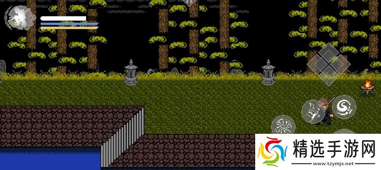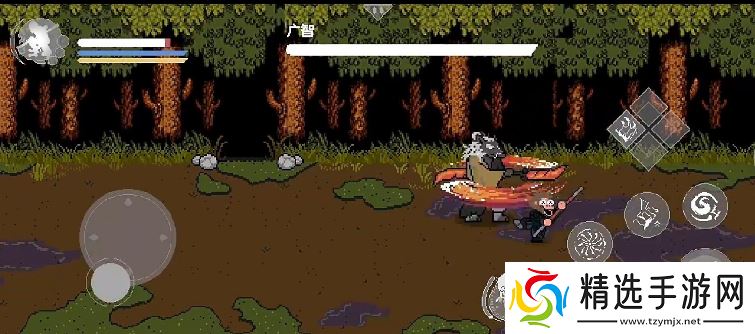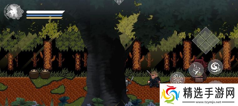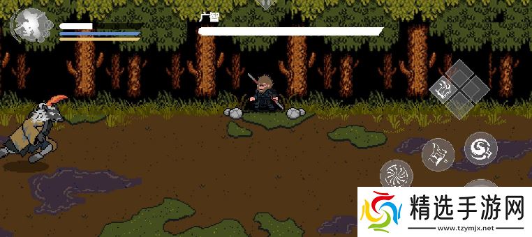 3、翻滚 图片右上角的按键为翻滚,可躲避弓箭或者近战伤害,若完美躲避即可触发闪避动画
