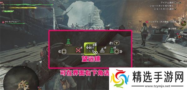 望远镜可以在物品滑块中选择使用。你需要按住 R1,然后按 □ 或 ○ 键来调整物品滑块,松开 R1 后按 □ 键来使用望远镜。