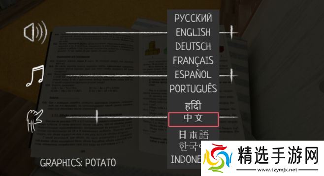 右上角暂停图标 → 设置图标,点击左下角ENGLISH,选择中文即可。
