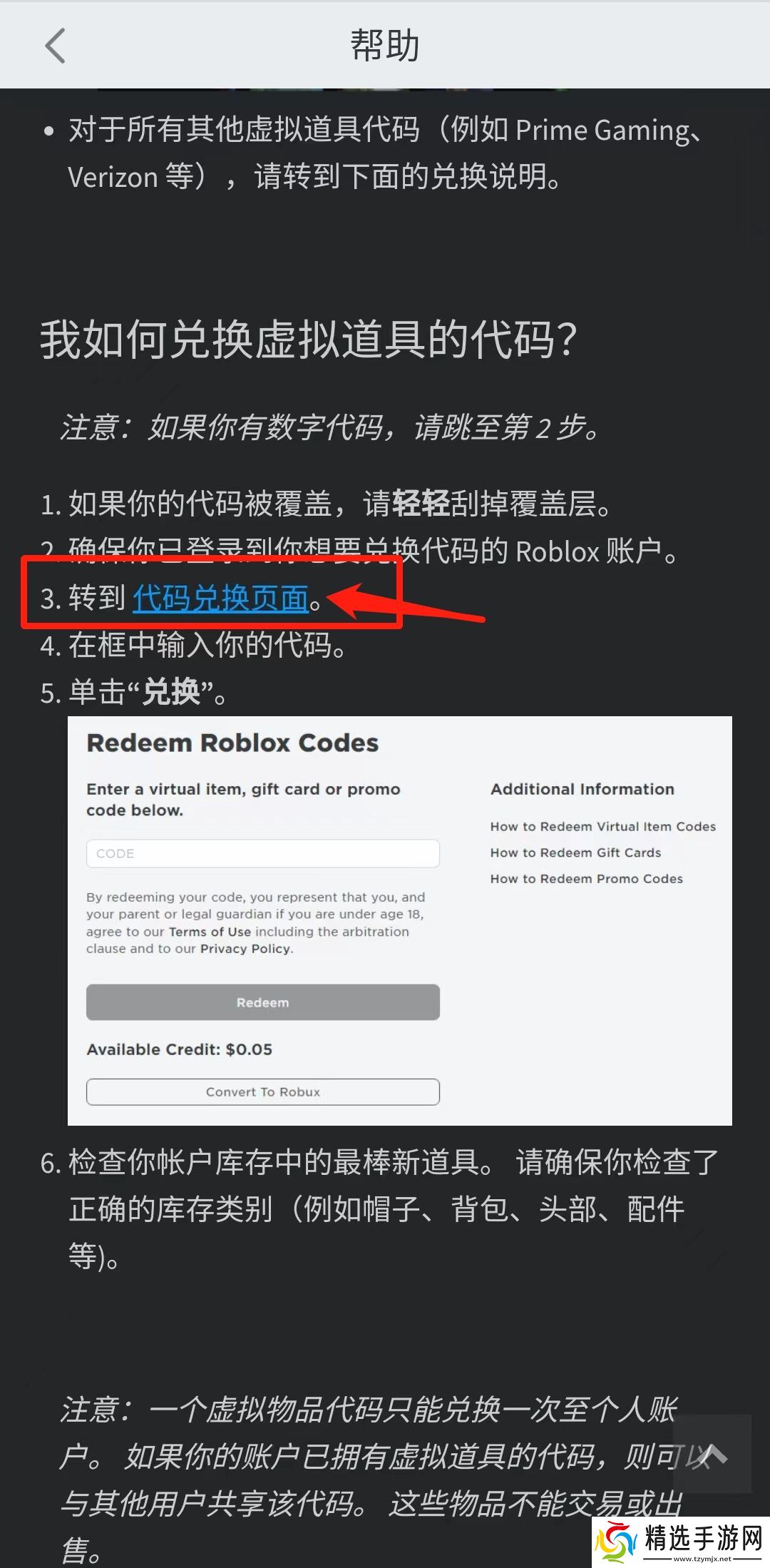 4、进入该问题之后,往下滑,找到如图所示的蓝色字体【代码兑换页面】,点击进入。