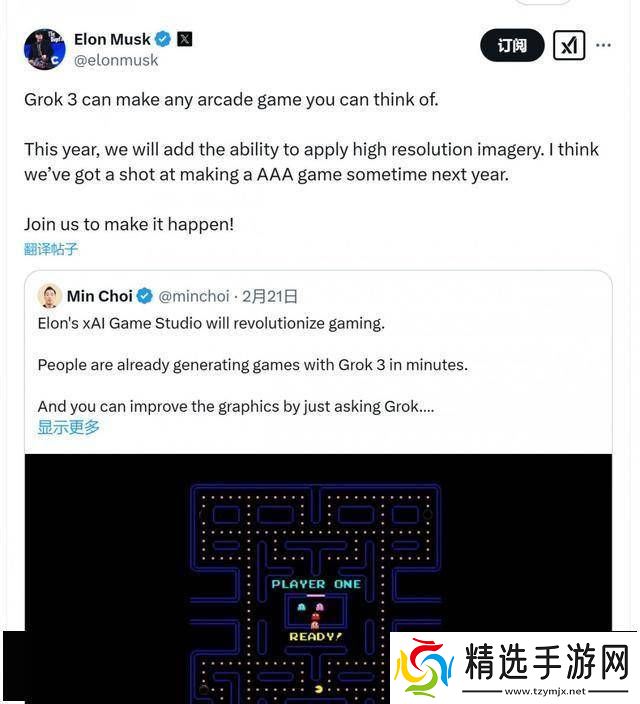 马斯克在一则推文中兴奋地宣布,Grok 3已具备创造任何玩家所能构想的游戏的能力。他甚至预言,在不远的2026年,Grok 3将有望制作出一款高质量的3A级游戏。他满怀信心地表示:“Grok 3能够创造出您所能想到的任何街机游戏。今年,我们将为其增添支持高分辨率图像的功能,而明年,我认为我们有机会实现制作3A游戏的壮举。”