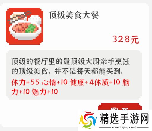 前期考虑实惠经济套餐,后期推荐购买顶级美食大餐,全面提升属性。