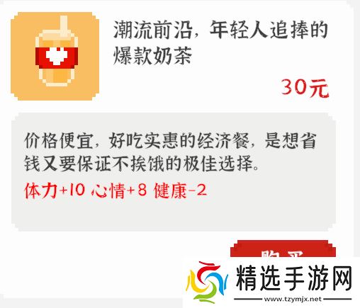 介绍:独立的体力加点,不会与饭共用次数,也就是说吃饭后还可以喝奶茶。后期不缺钱之后推荐购买,前期可用于补全紧缺的体力。