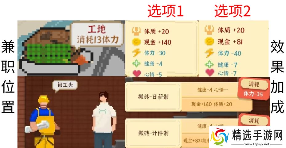 决定效果:体质;消耗体力:35点;选项1消耗健康4点,心情5点、选项2消耗健康7点心情7点。