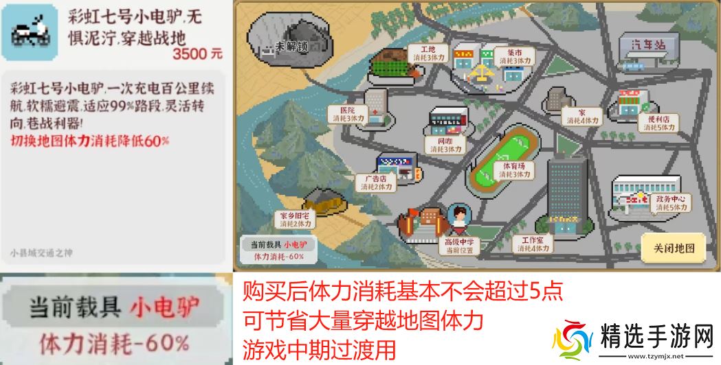 解析:推荐在中期购买,用于降低穿越地图的体力消耗,但在完成父母的攒下5万块钱任务后可免费获得二手车一辆,穿越地图不再需要花费体力,因此该物品只推荐中期购买过渡。