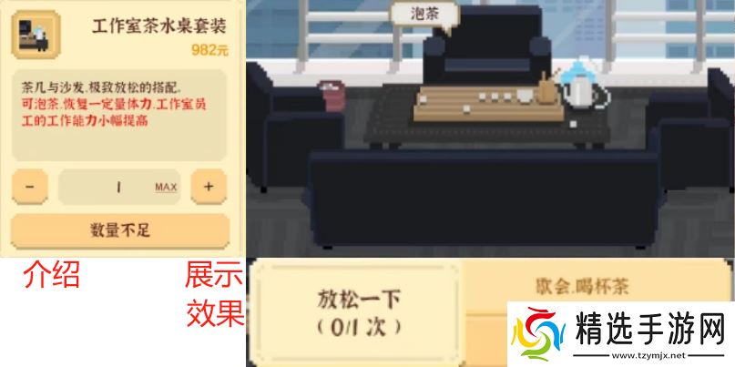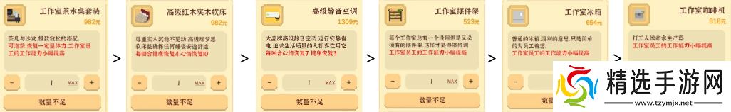 优先购买工作室茶水桌套装,增加体力恢复。