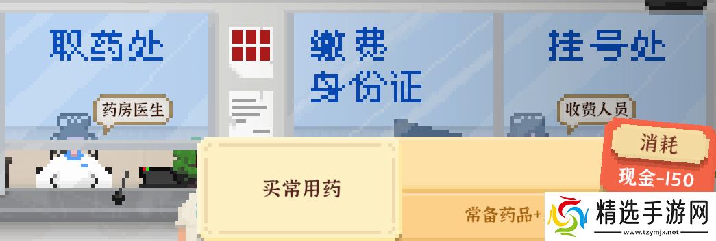 医院药房医生购买,150购买5药品,每天可使用一次,健康+3
