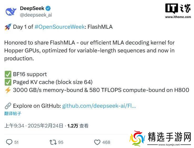 DeepSeek于近日宣布启动了一项名为“开源周”的活动,旨在向公众开放其技术资源。此次活动的首个开源项目名为FlashMLA,它是一个专为Hopper GPU优化的高效MLA解码内核,特别适用于处理可变长度的序列数据。