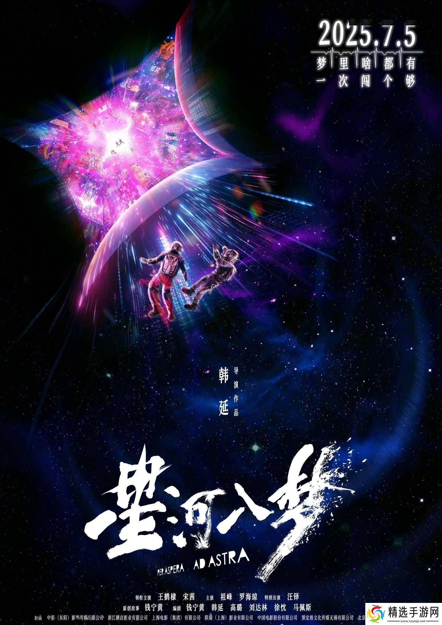 在这张引人入胜的海报中,浩瀚宇宙中出现了一道巨大的梦境裂缝,无数梦境交错其中,闪耀着绚烂多彩的光芒,仿佛点亮了整个星河。两名宇航员漂浮在裂缝之前,神情肃穆,仿佛即将被吸入这未知的梦境裂缝,开始一场前所未有的冒险之旅。